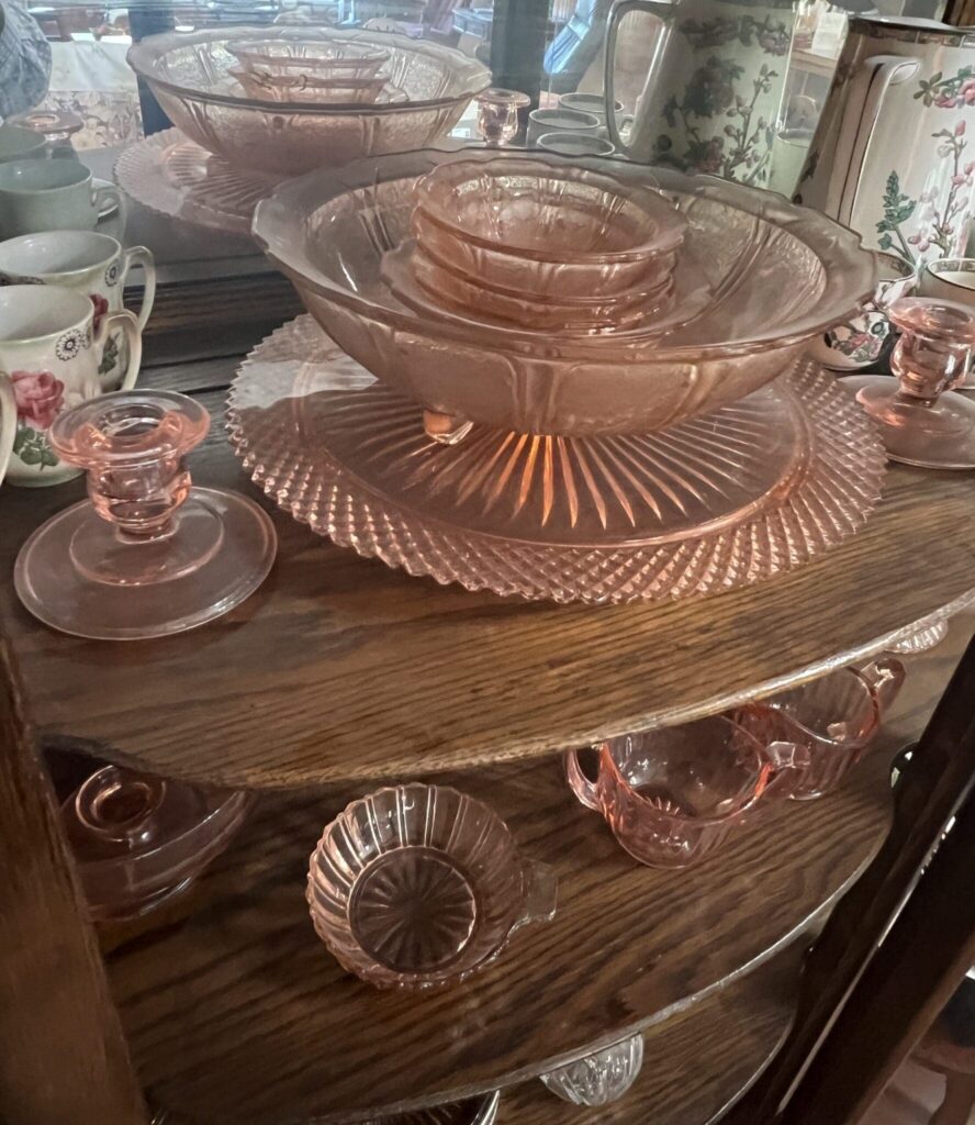 | Depression Glass, Greens, Pinks |