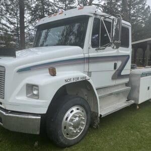 | 1997 Freightliner Business Class Semi, 330 Cummins, Allison 6 Speed Automatic, Air Brakes, Electric Trailer Brakes, Includes 5th Wheel & GN Hitches, Air Ride Suspension, 80% Tires |
