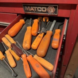 | Rigid Compound Miter Saw, Table Saw, Matco Tool Cabinet |