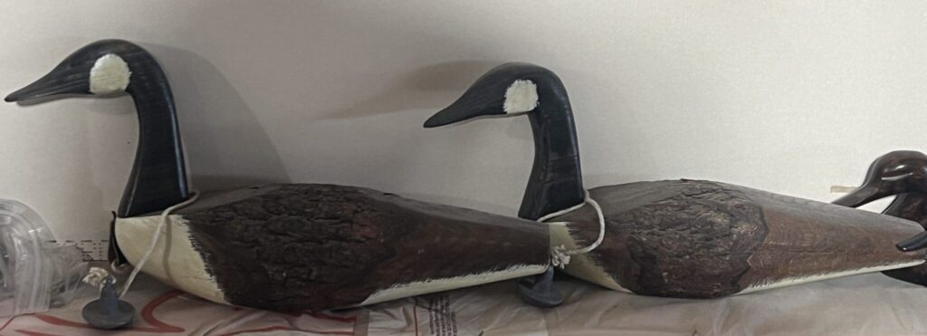 | Wooden Geese, Antique Clocks, Scales |