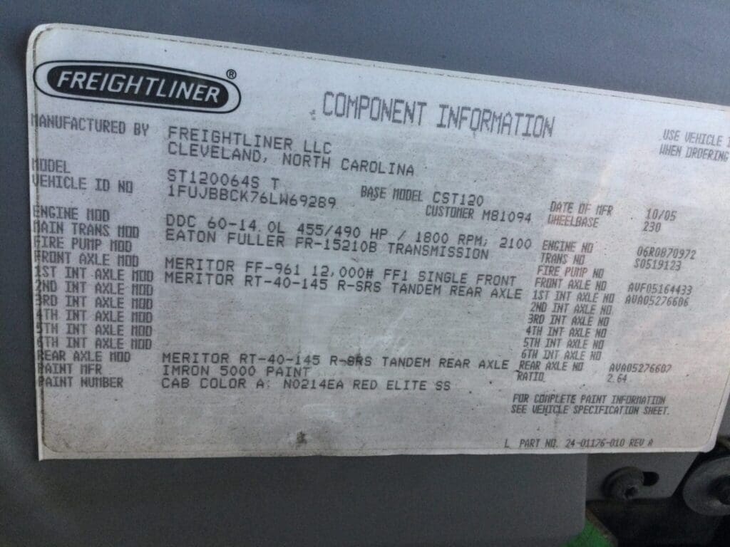 | 2005 Freightliner Sleeper Truck, Engine DDC60-14 455/490HP, Trans Eaton Fuller FR-15210B, Ratio 2.64, VIN# 1FUJBBCK76LW69289 CST120 | |||||